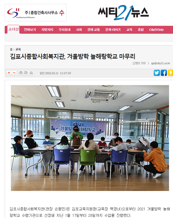 - [씨티21뉴스] 김포시종합사회복지관, 겨울방학 늘해랑학교 마무리.PNG (778.8K) 19회 다운로드DATE : 2022-02-14 09:08:53
