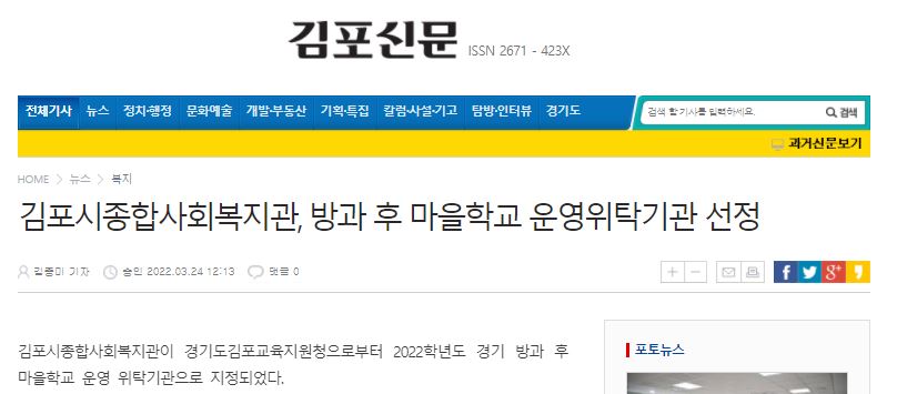 - 이전글[김포미래신문] 방과후마을학교운영위탁기관선정 2022.03.30