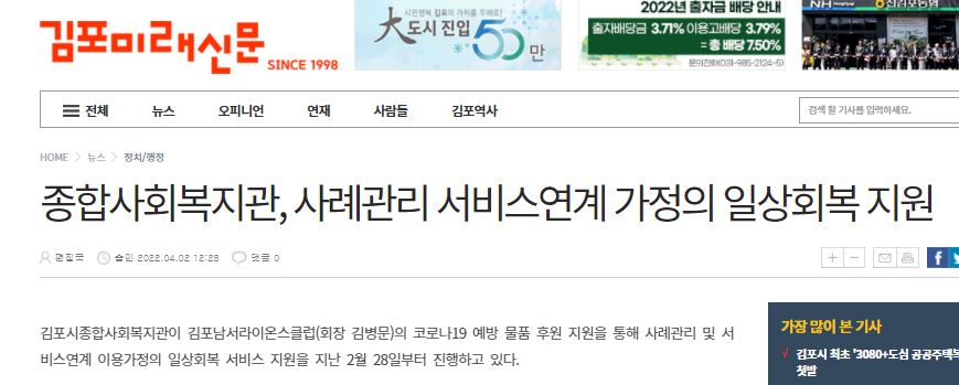 - [김포미래신문] 종합사회복지관, 사례관리 서비스연계 가정의 일상회복 지원.JPG (56.7K) 26회 다운로드DATE : 2022-04-04 16:57:13