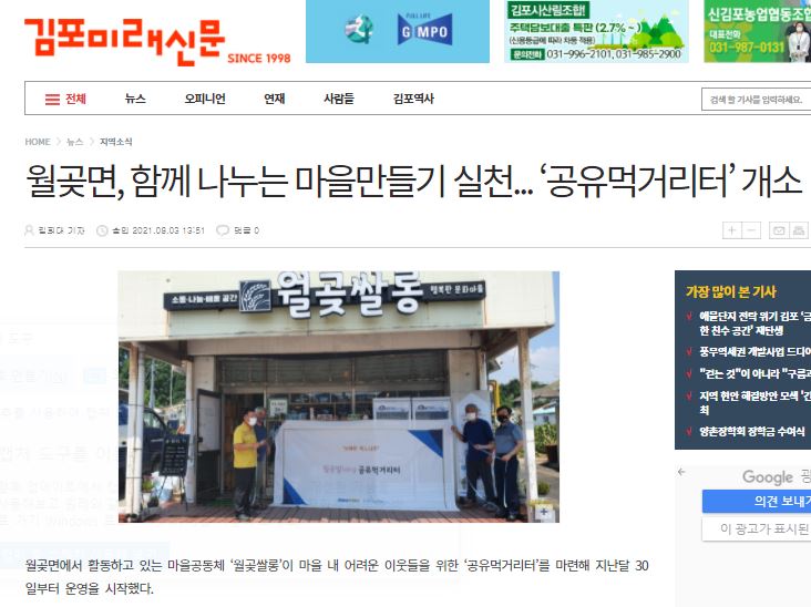 - [김포미래신문] 월곶면, 함께 나누는 마을만들기 실천 공유먹거리터 개소.JPG (73.9K) 20회 다운로드DATE : 2021-08-18 09:33:00