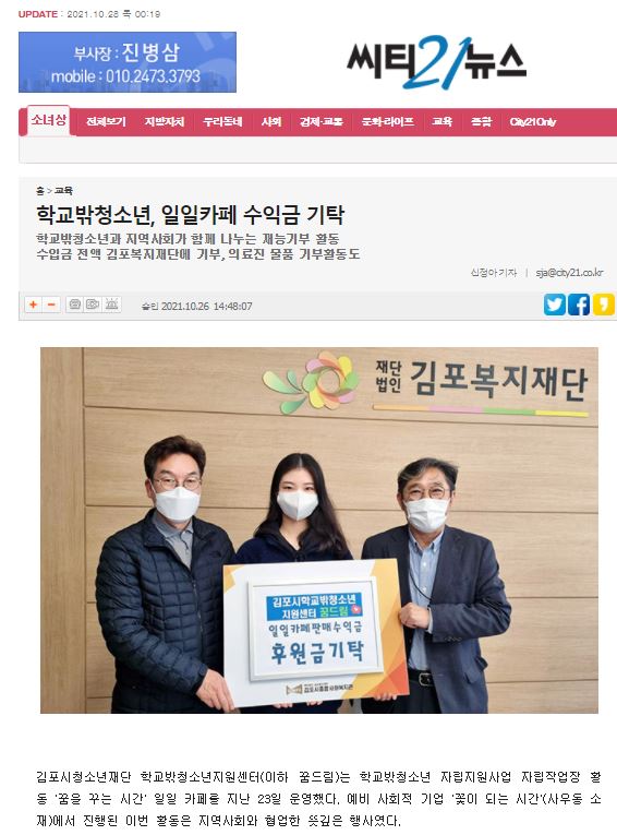 - 다음글[김포시민신문] 학교밖청소년과 지역사회가 함께 나누는 재능기부 활동 2021.10.28