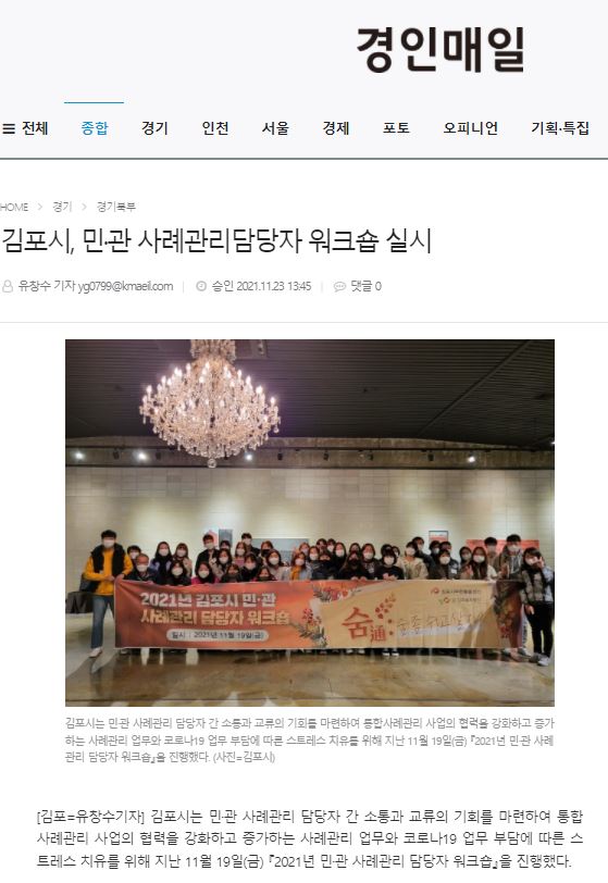 - [경인매일] 김포시, 민관 사례관리담당자 워크숍 실시.JPG (74.0K) 20회 다운로드DATE : 2021-11-30 14:56:44
