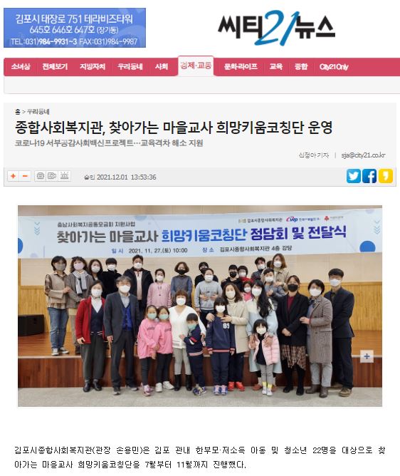 - 이전글[김포시뉴스포털] 찾아가는 마을교사 '희망키움코칭단' 진행 2021.12.06