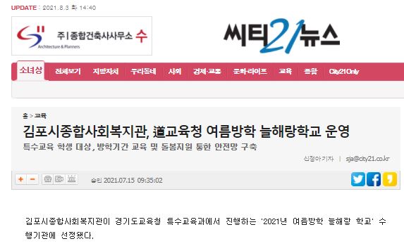 [씨티21뉴스]김포시종합사회복지관, 道교육청 여름방학 늘해랑학교 운영 특수교육 학생 대상, 방학기간 교육 및 돌봄지원 통한 안전망 구축