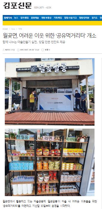 [김포신문] 월곶면, 어려운 이웃 위한 ‘공유먹거리터’ 개소