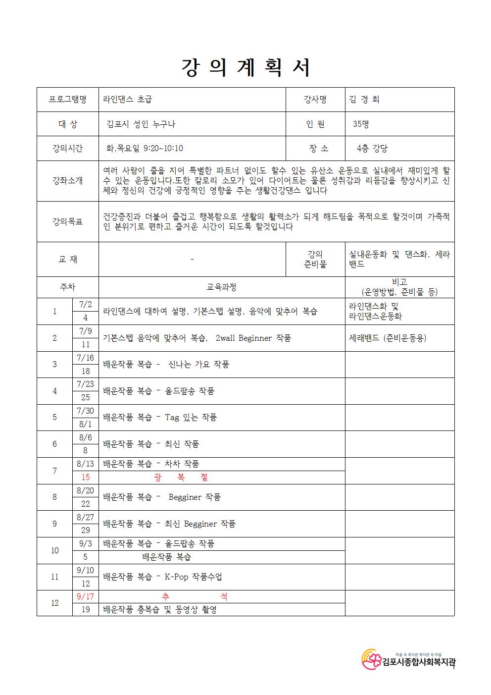※정원의 50% 인원만 온라인 모집 진행하며 잔여 인원은 방문접수 (6. 24.(월)~7. 31.(수) 09:00~18:00)로 진행하니 참고바랍니다.