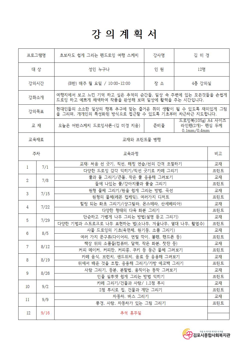 ※정원의 50% 인원만 온라인 모집 진행하며 잔여 인원은 방문접수 (6. 24.(월)~7. 31.(수) 09:00~18:00)로 진행하니 참고바랍니다.