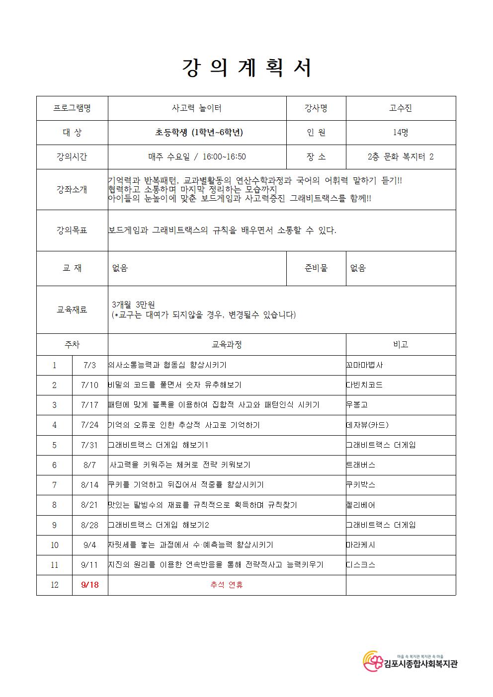 16:00 ~ 16:50 (매주 수요일)