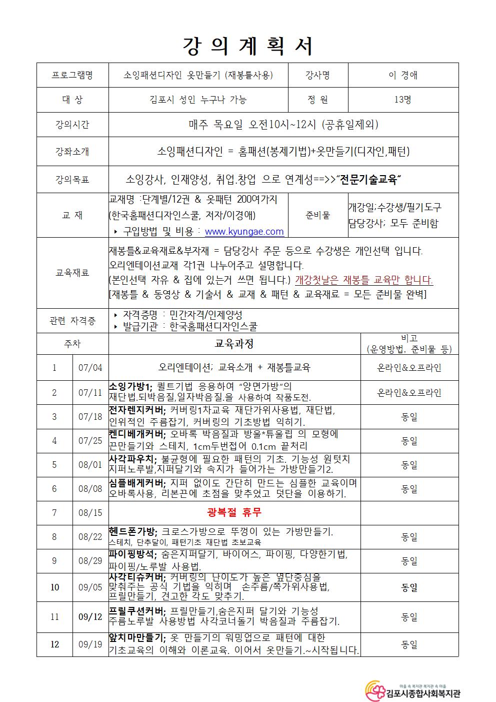 ※정원의 50% 인원만 온라인 모집 진행하며 잔여 인원은 방문접수 (6. 24.(월)~7. 31.(수) 09:00~18:00)로 진행하니 참고바랍니다.