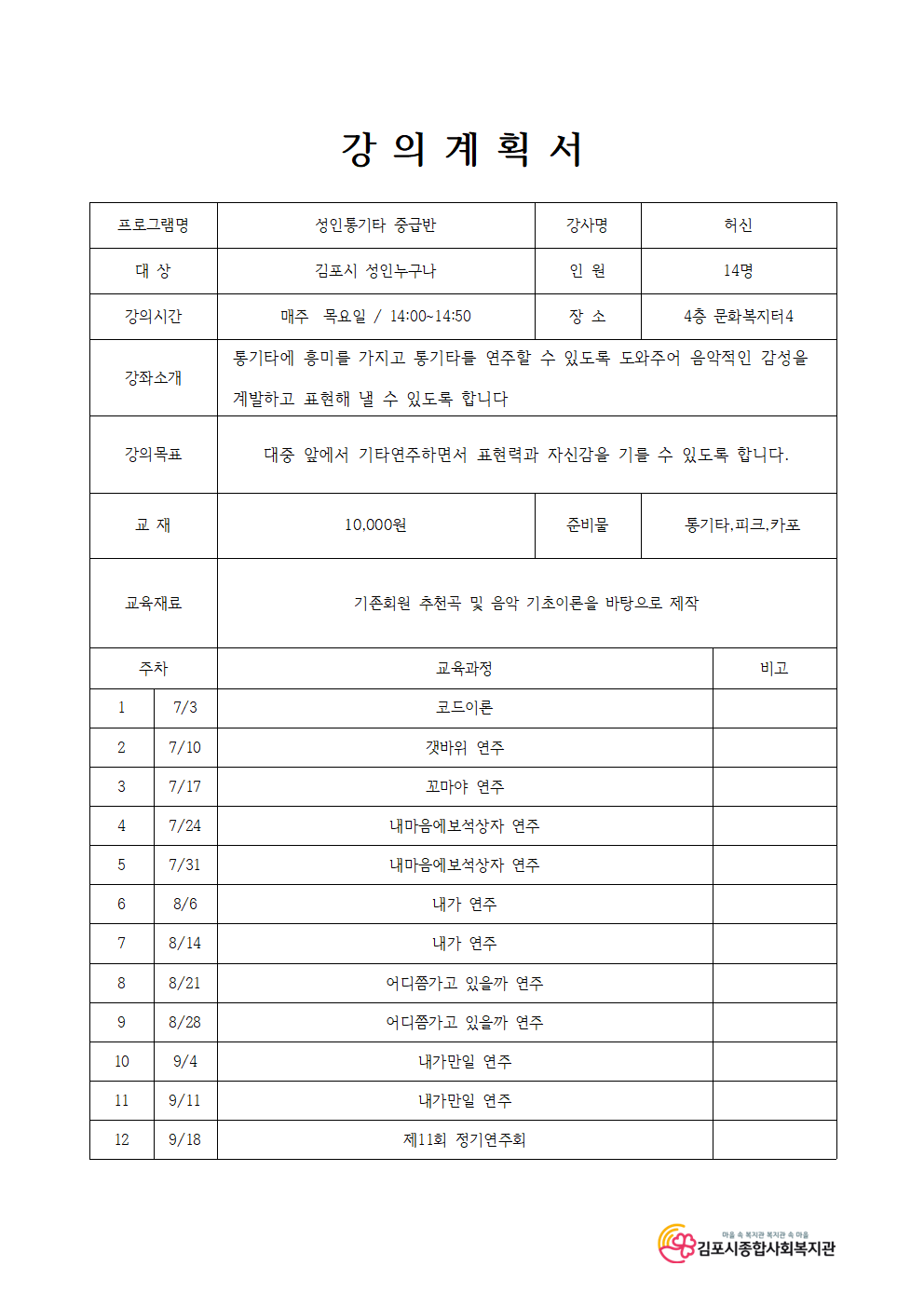 성인 통기타 중급반