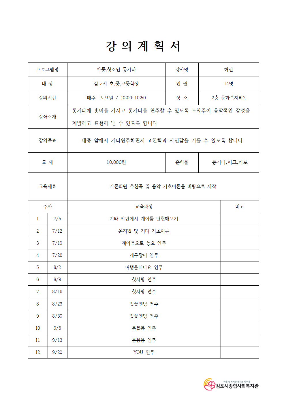10:00 ~ 10:50 (매주 토요일)