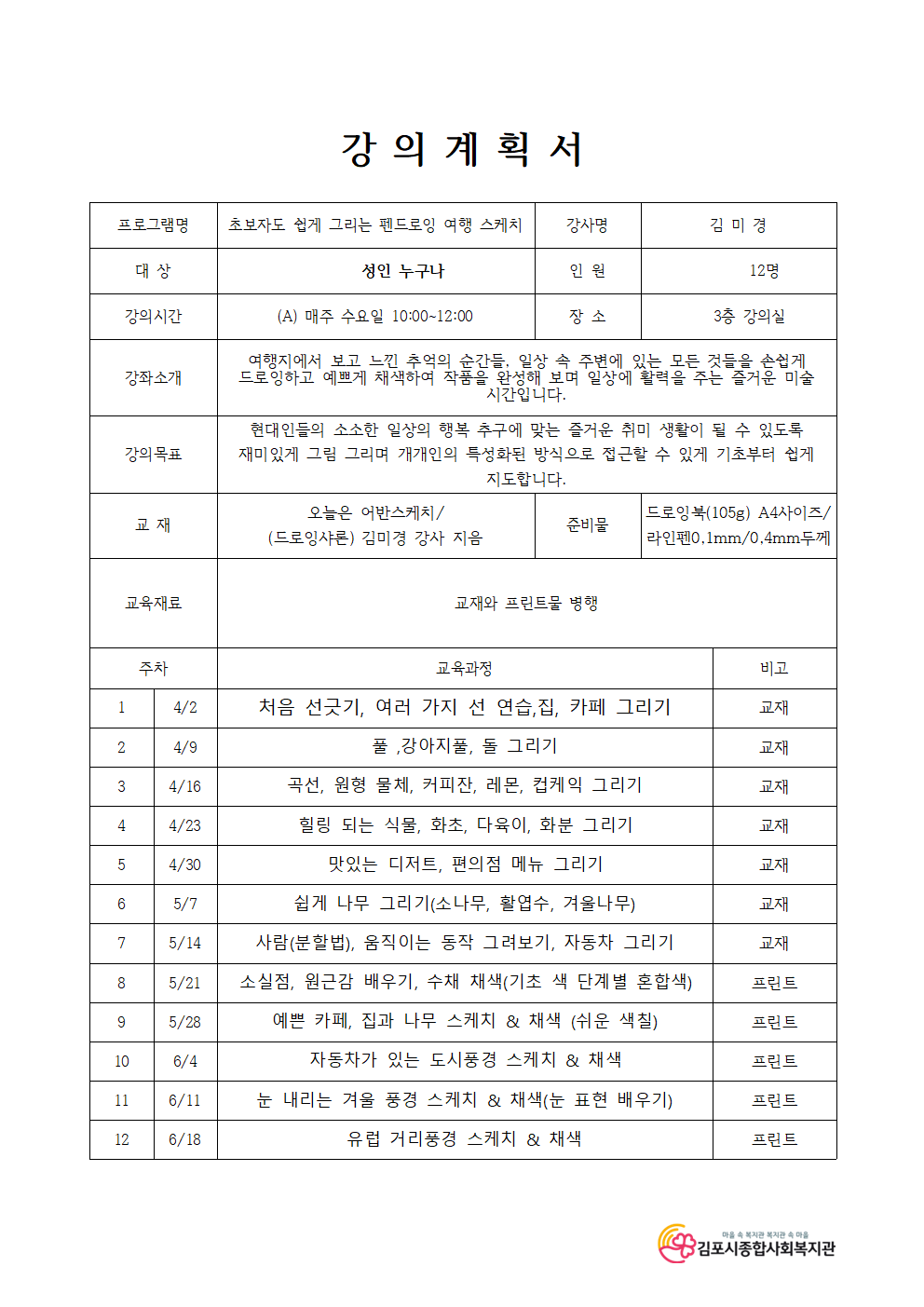 펜드로잉 여행스케치 A반