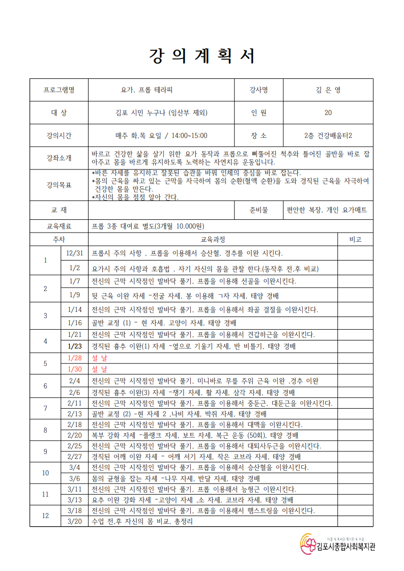 14:00 ~ 15:00 (매주 화요일, 목요일)