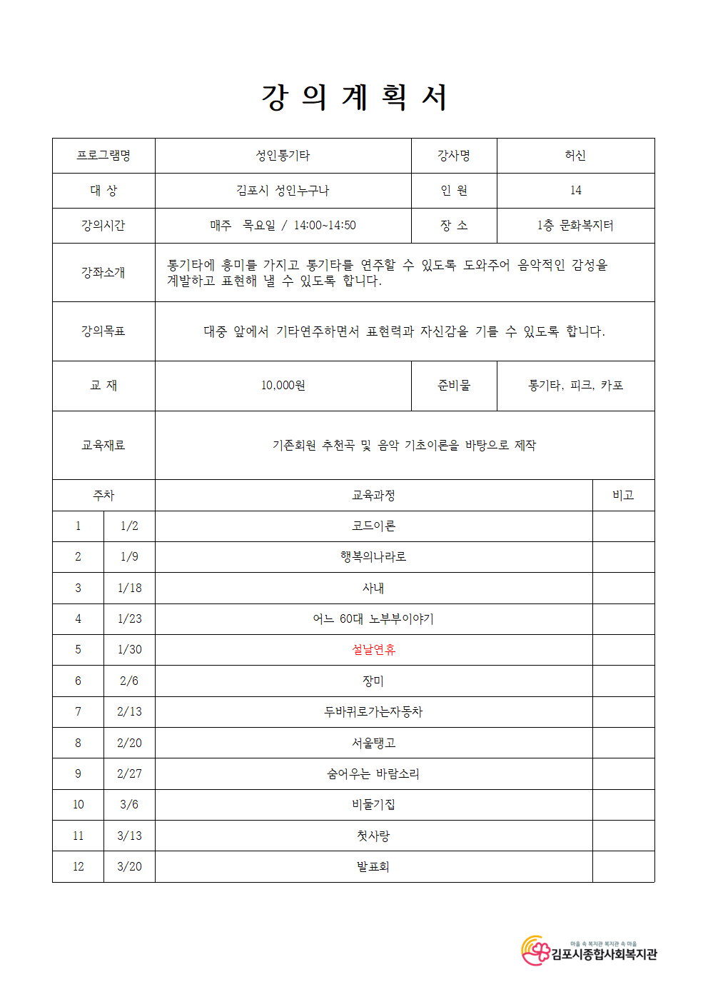 성인 통기타 중급반