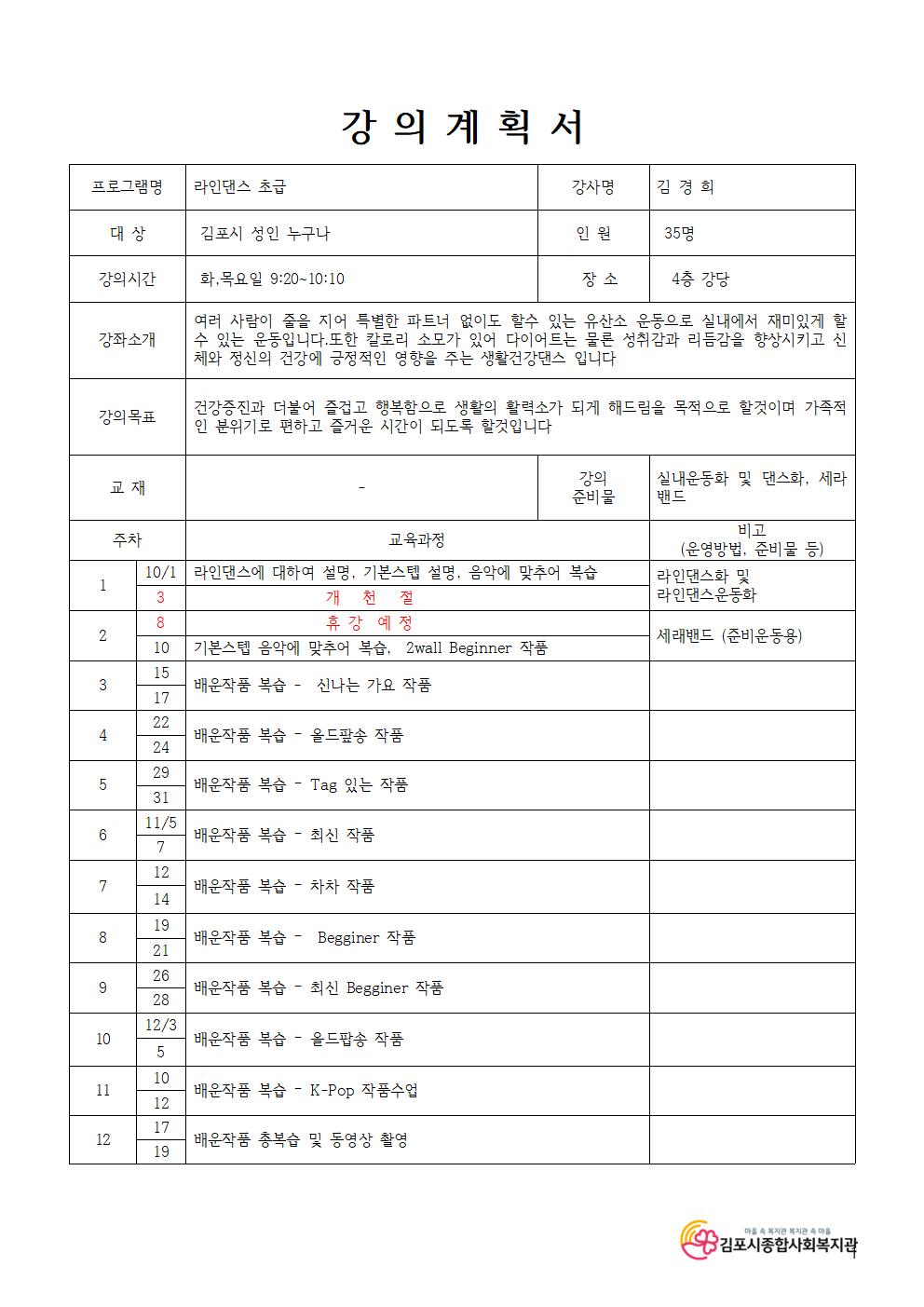 09:20 ~ 10:10 (매주 화요일, 목요일)