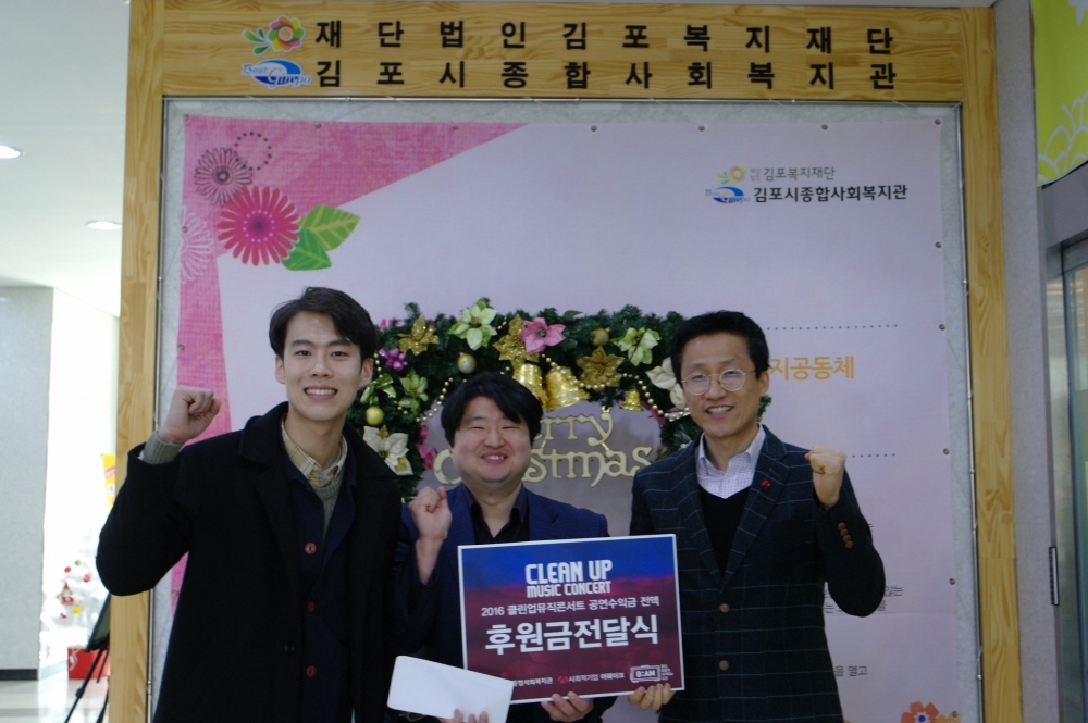 \'2016년 클린업뮤직콘서트\' 공연수익금 전액을 김포시종합사회복지관(관장 서상범)에 전달하는 후원금 전달식이 진행되었습니다.