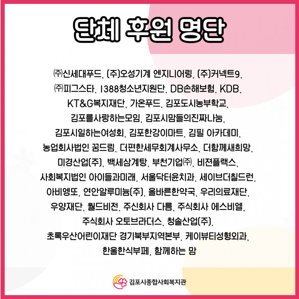 - 김포시종합사회복지관 직원 일동 드림