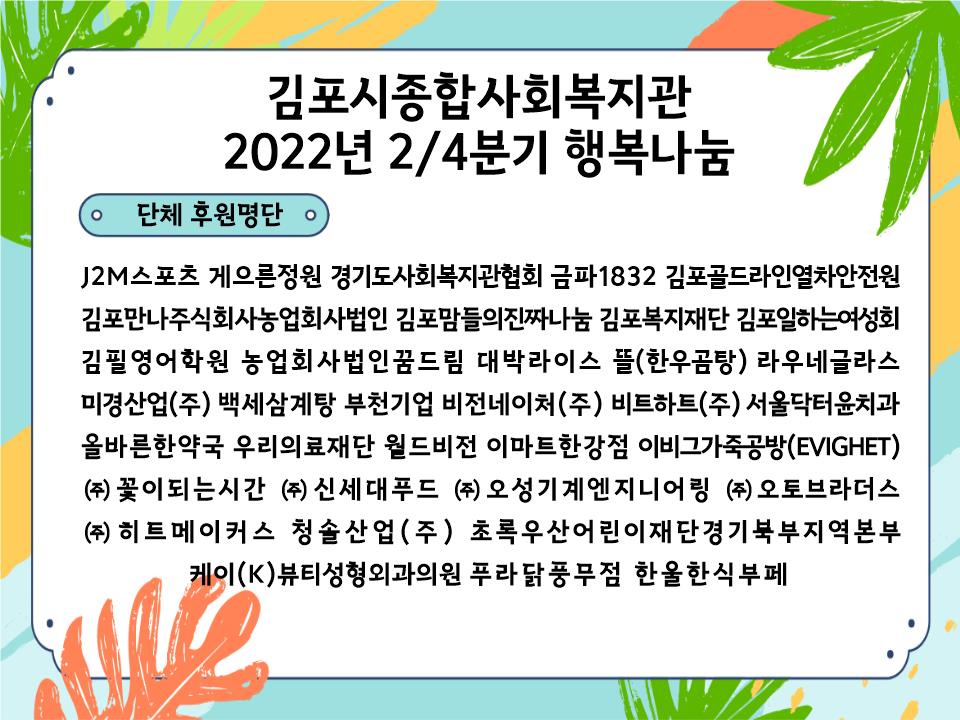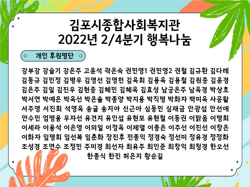 2022년 2분기 김포시종합사회복지관 후원자 명단입니다.