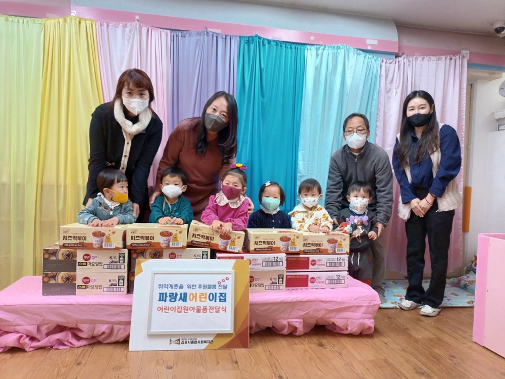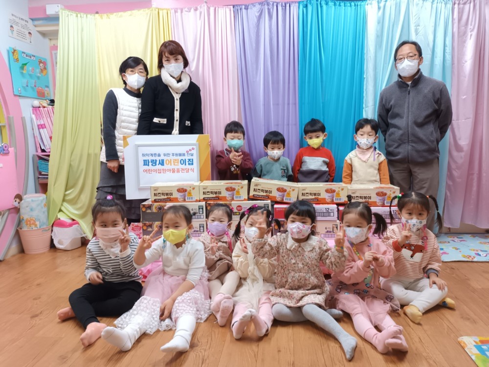 12월 5일 파랑새어린이집(원장 유은숙)에서 교직원과 학부모, 원생 등과 함께 사랑의 후원물품 전달식을 진행하였습니다.