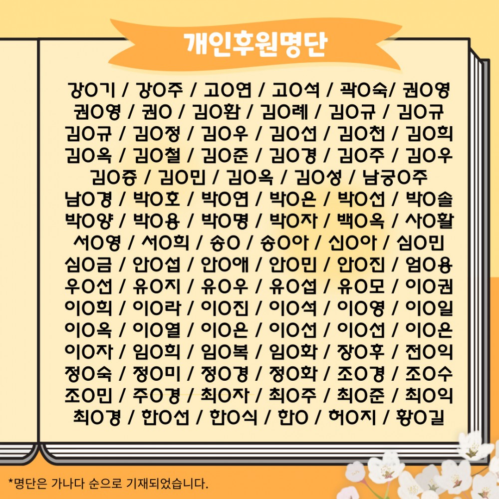2023년도 1분기(1월~3월) 후원자 명단입니다.