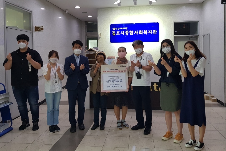 2020년 6월 26일(금), 김포시 사회적경제기업인 농업회사법인(주)김포농식업에서 김치 외 4종 식료품 30세트와 과수원길 협동조합에서 감자 65박스(한 박스 10kg)를 지원해 주셨습니다.