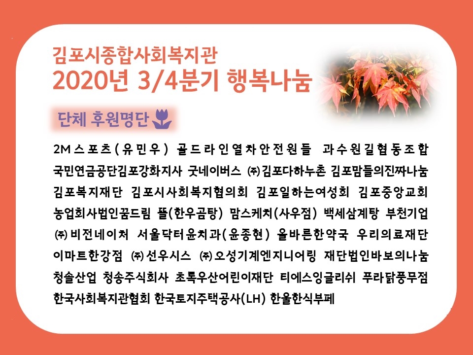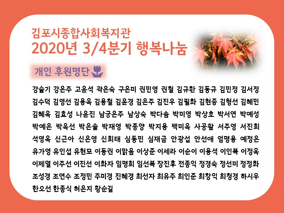 2020년 3분기 김포시종합사회복지관과 함께 해주신 후원자분들 명단입니다.
