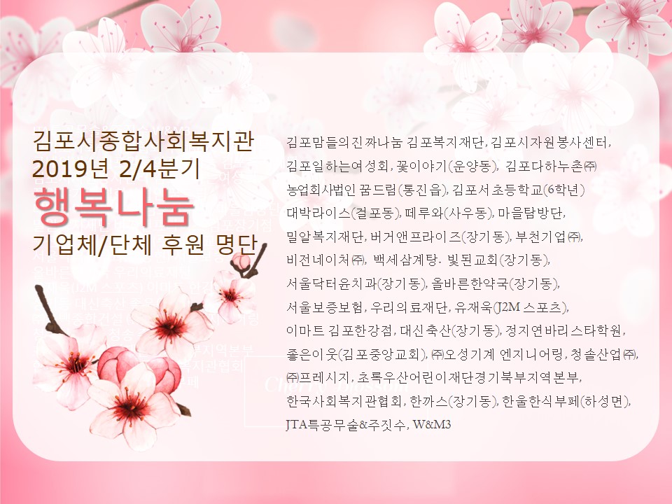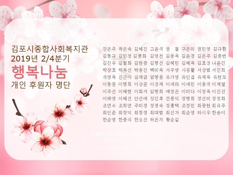 2019년 2분기 김포시종합사회복지관과 함께 해주신 후원자 명단입니다.