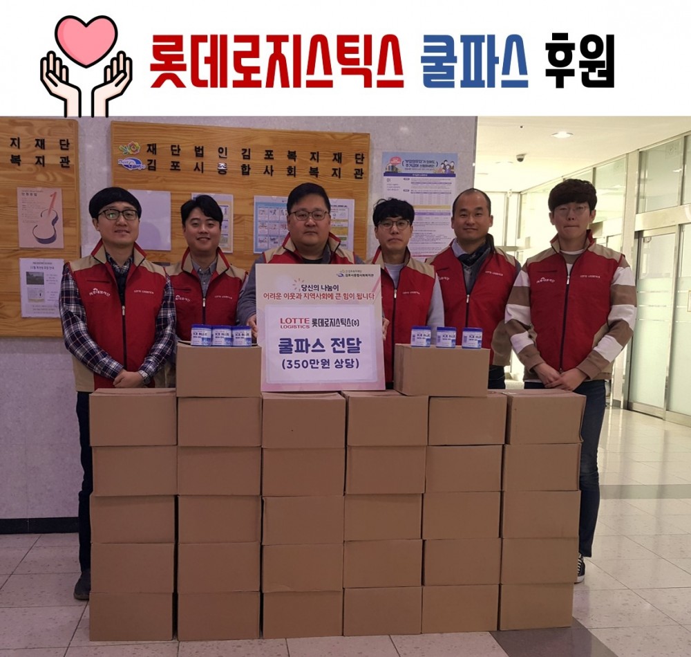 2018년 11월 26일 롯데로지스틱스에서 쿨파스 32박스를 후원해주셨습니다.
