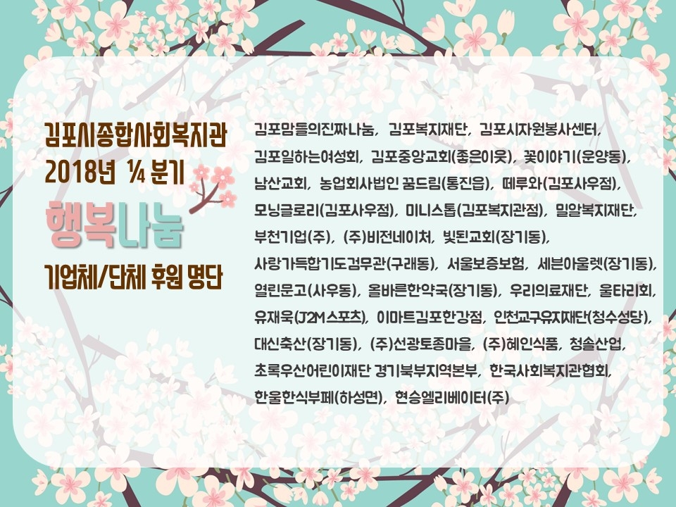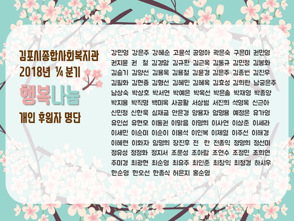 2018년 1월부터 3월까지의 김포시종합사회복지관과 함께 해주신 후원자 명단입니다.
