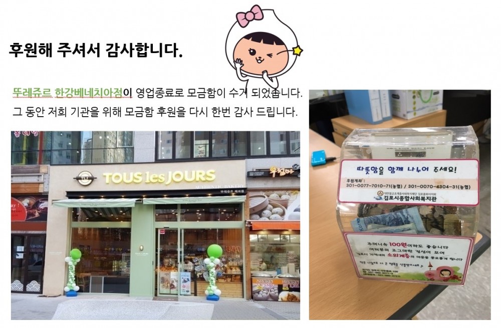 뚜레쥬르 한강베네치아점 그동안 후원해 주셔서 감사드립니다