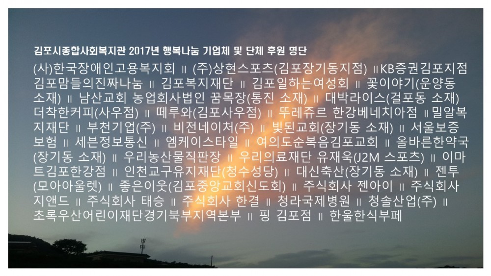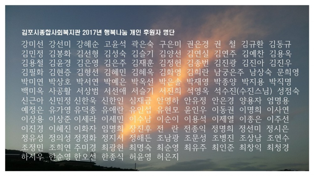 김포시종합사회복지관 2017년 2분기 행복나눔 후원 명단입니다.