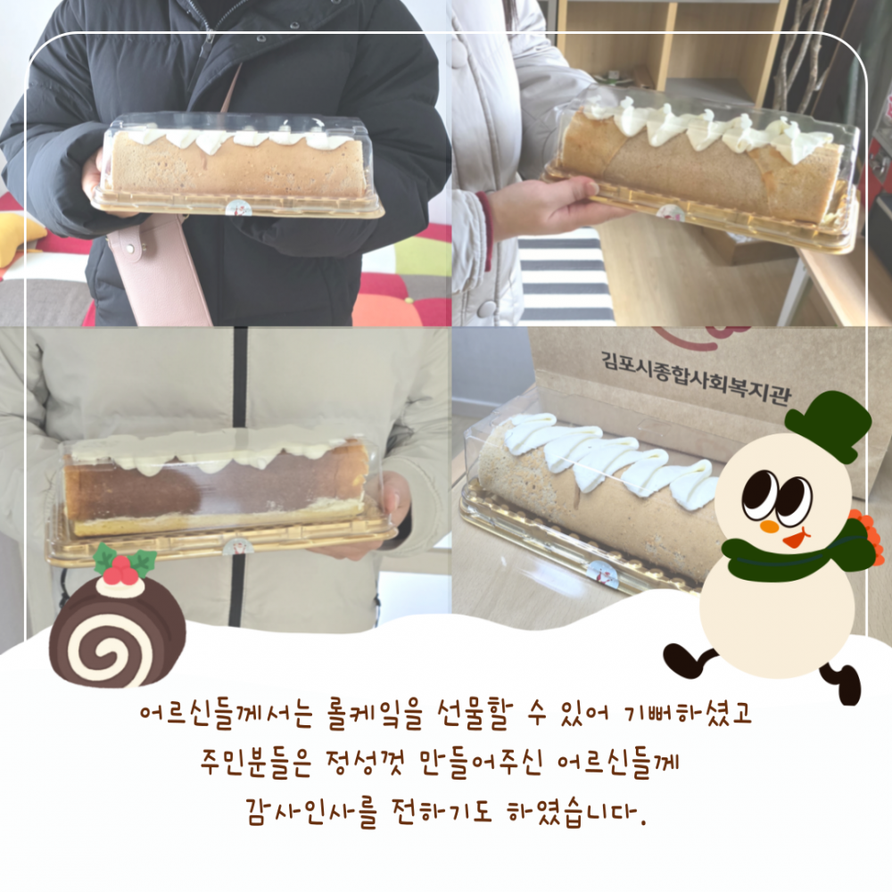 어르신들께서는 롤케잌을 선물할 수 있어 기뻐하셨고