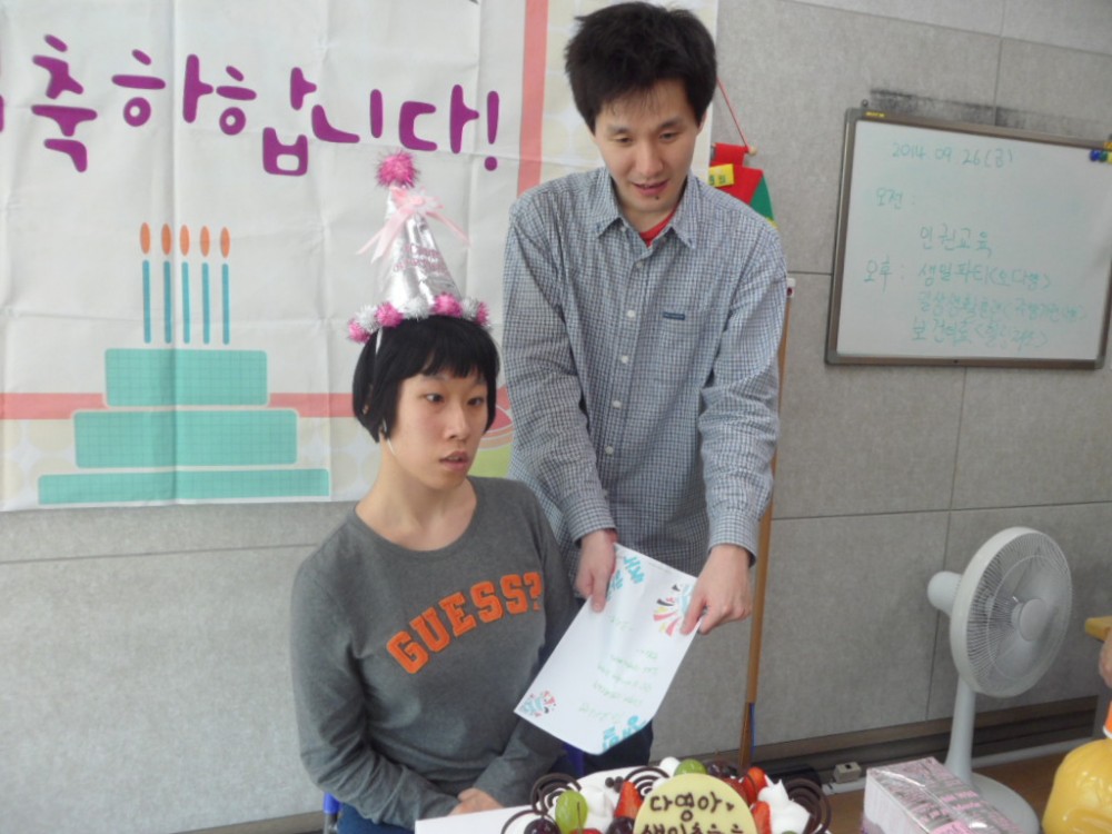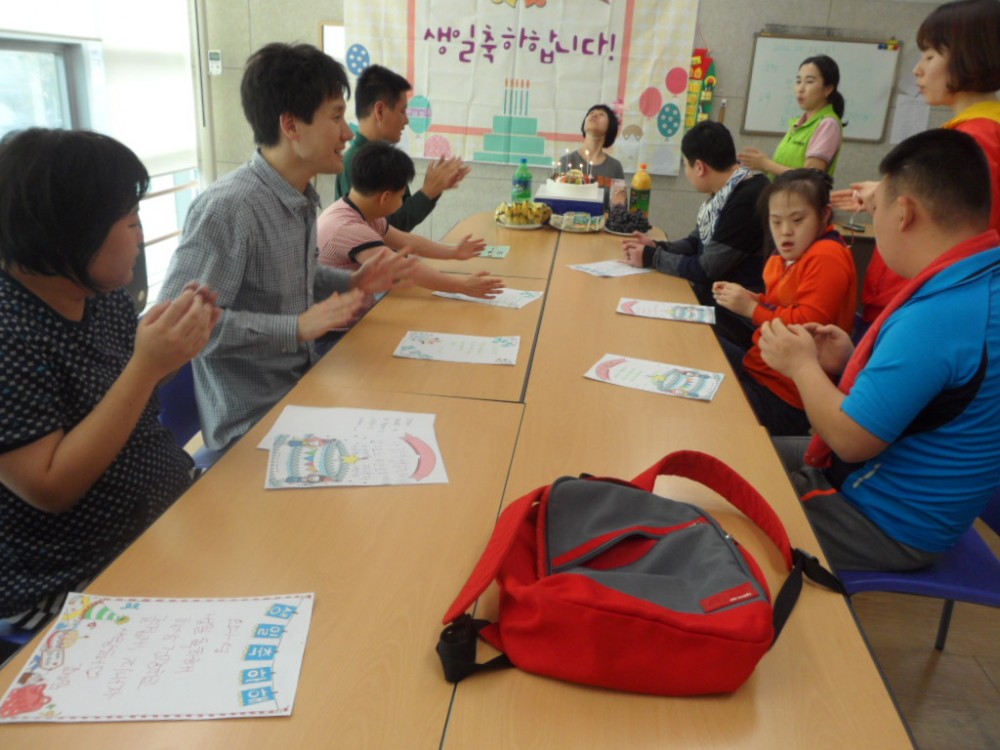 김포시성인장애인주간보호센터는 이용자 생일에 맞춰 생일파티를 진행합니다.