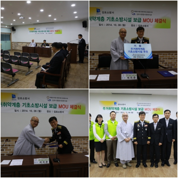 김포시 주거취약계층 기초소방시설 보급을 위한 업무협약식을 김포소방서와 실시하였습니다