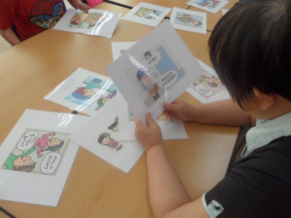 * 교육주제 : 성추행 - 친구와 연상되는 교구를 골라 외곽선 그려 색칠하기, 친구들이 그려준 그림 중 좋은 것과 싫은 것 표현하기, 성추행 상황 그림 찾기, 성추행 상황에서의 대처법 알기