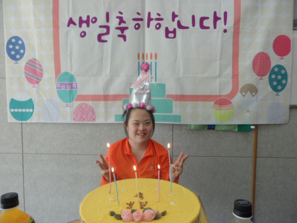 김포시성인장애인주간보호센터는 이용자 생일에 맞춰 생일파티를 진행합니다.