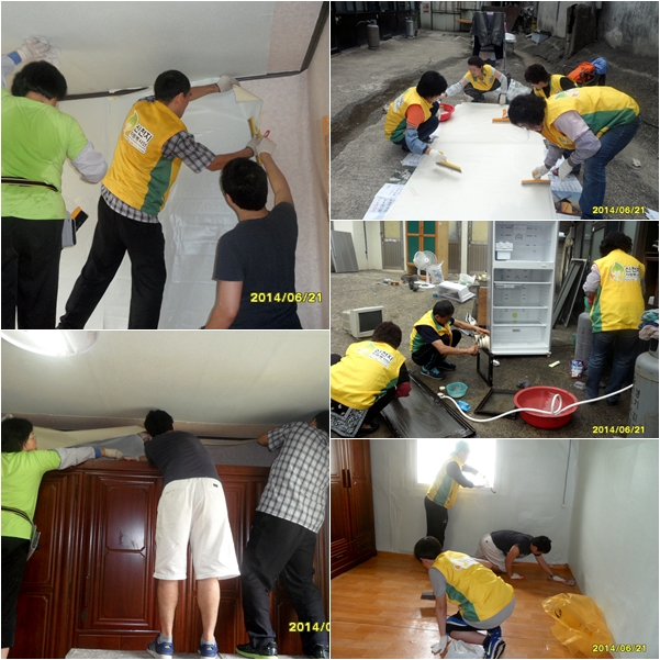 김포시종합사회복지관에서는 자원봉사자와 함께 가정방문하여 도배지원 및 집기 수리 등 주거환경개선사업을