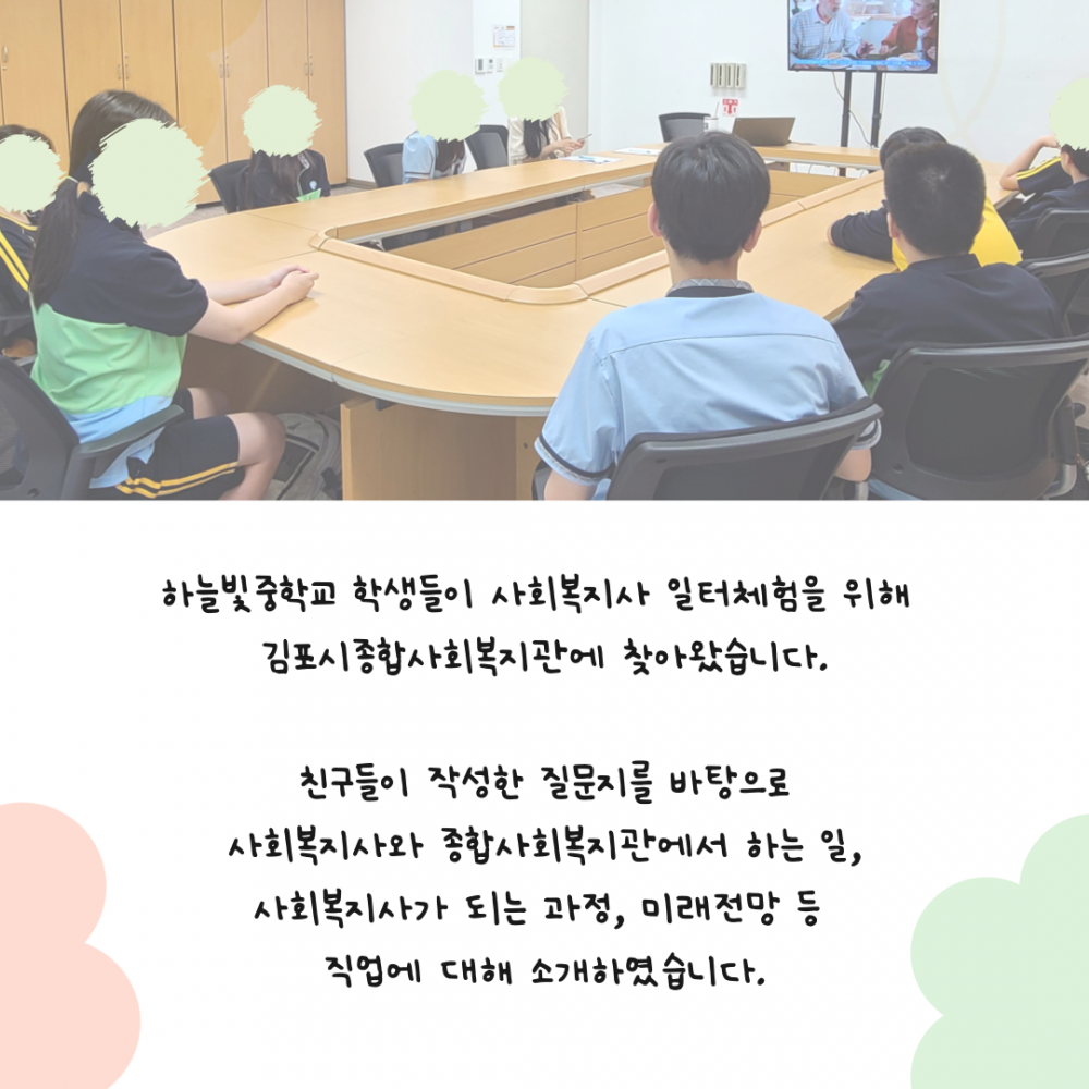 하늘빛중학교 학생들이 사회복지사 일터체험을 위해