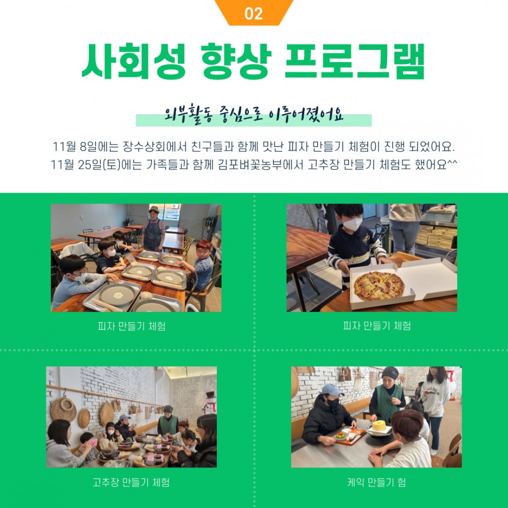 12월에는 사회성 향상 프로그램이 외부로 자주 나갈 예정이라