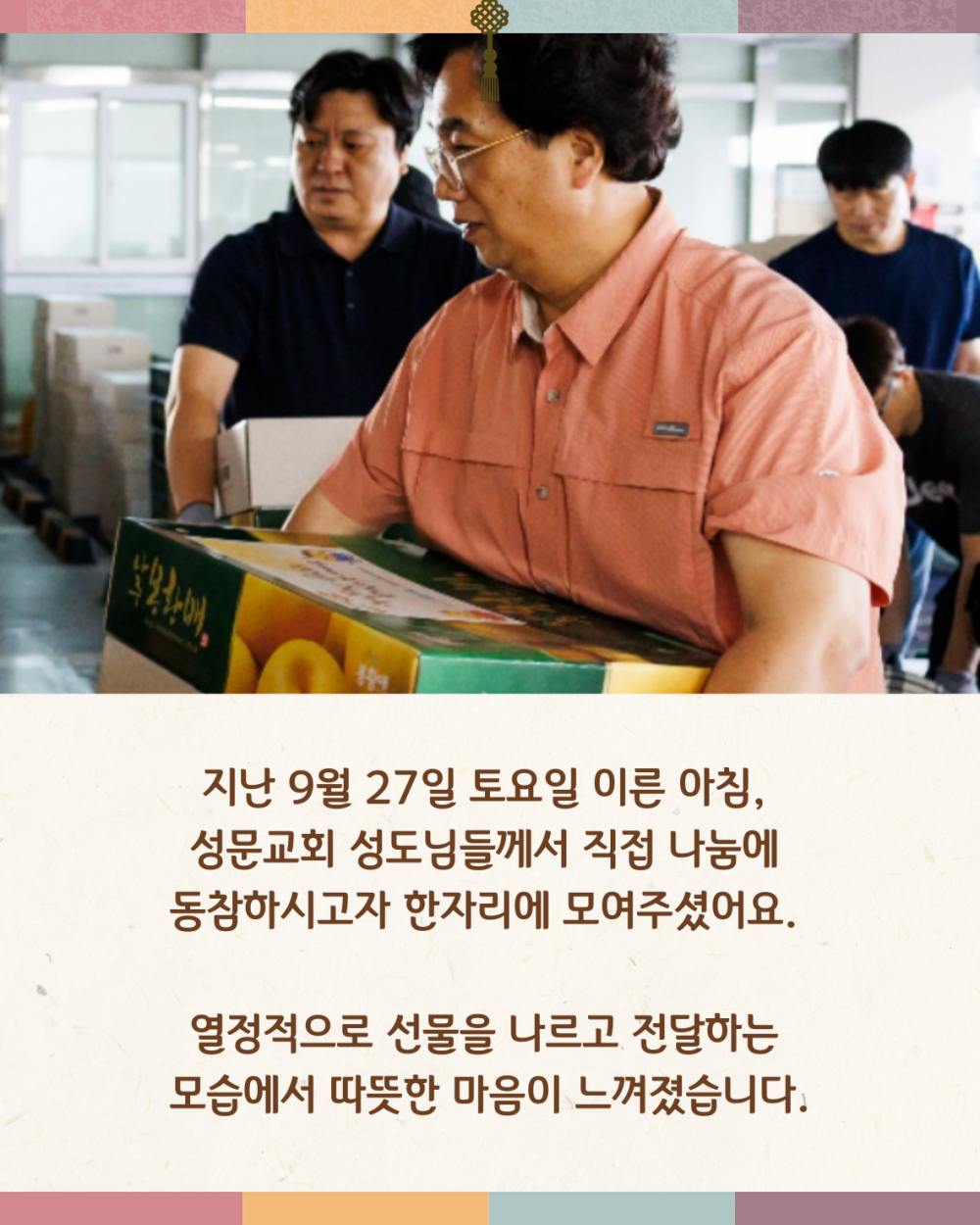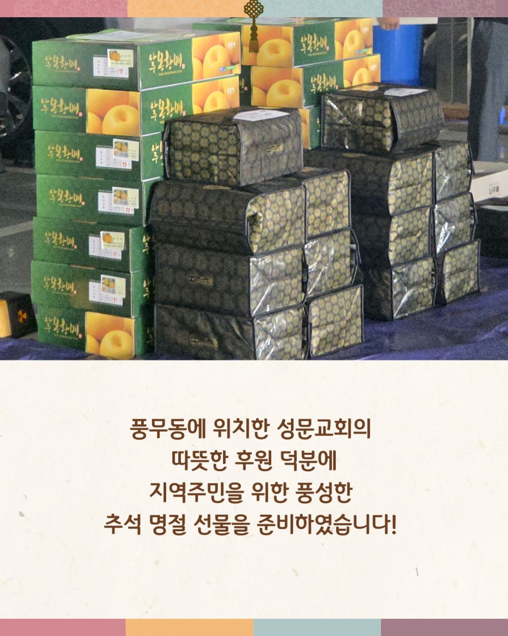 추석 명절을 맞이하여 성문교회의 후원과 복지관에서 준비한 선물세트로