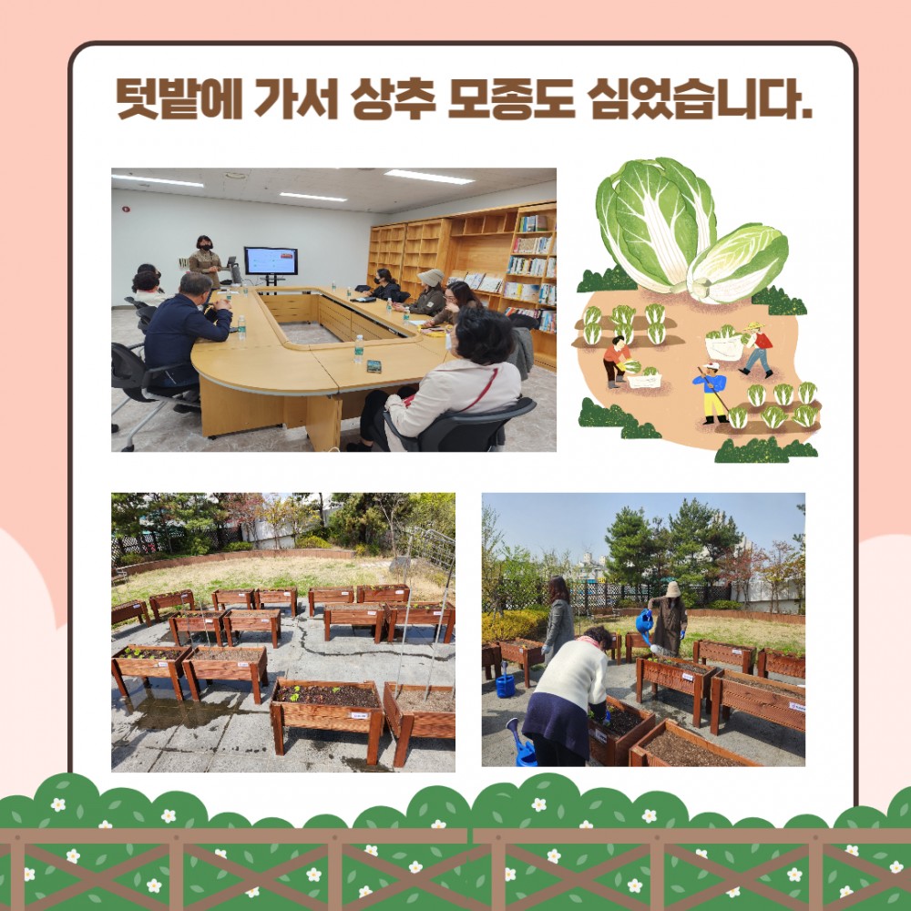 한해 텃밭 잘 지을 수 있도록 사전교육과 함께 텃밭 추첨과 상추 모종도 심어보았습니다.
