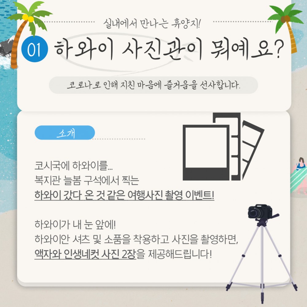 지난 8월 8일(월)~8월 9일(화) 2틀간, 복지관 늘봄 미디어센터에서 '하와이 사진관'이 진행되었습니다.????♂️????♀️