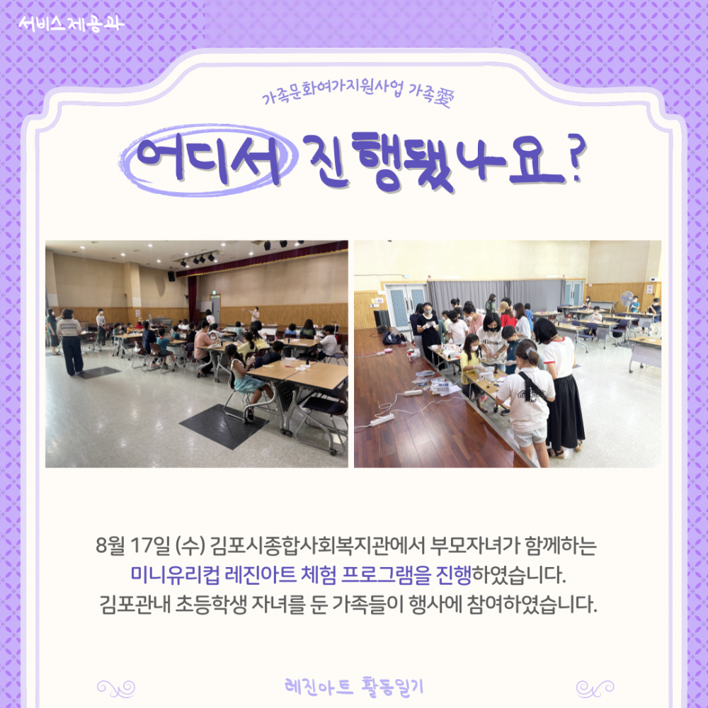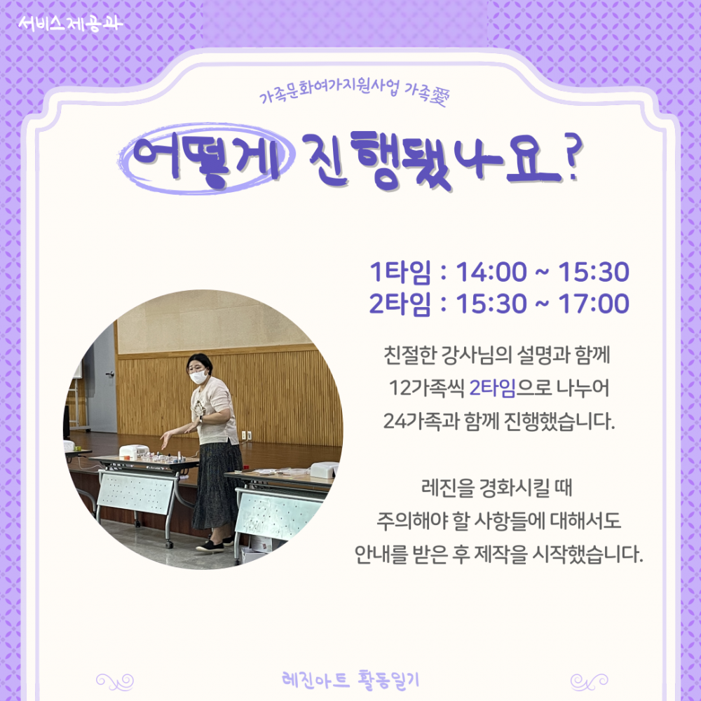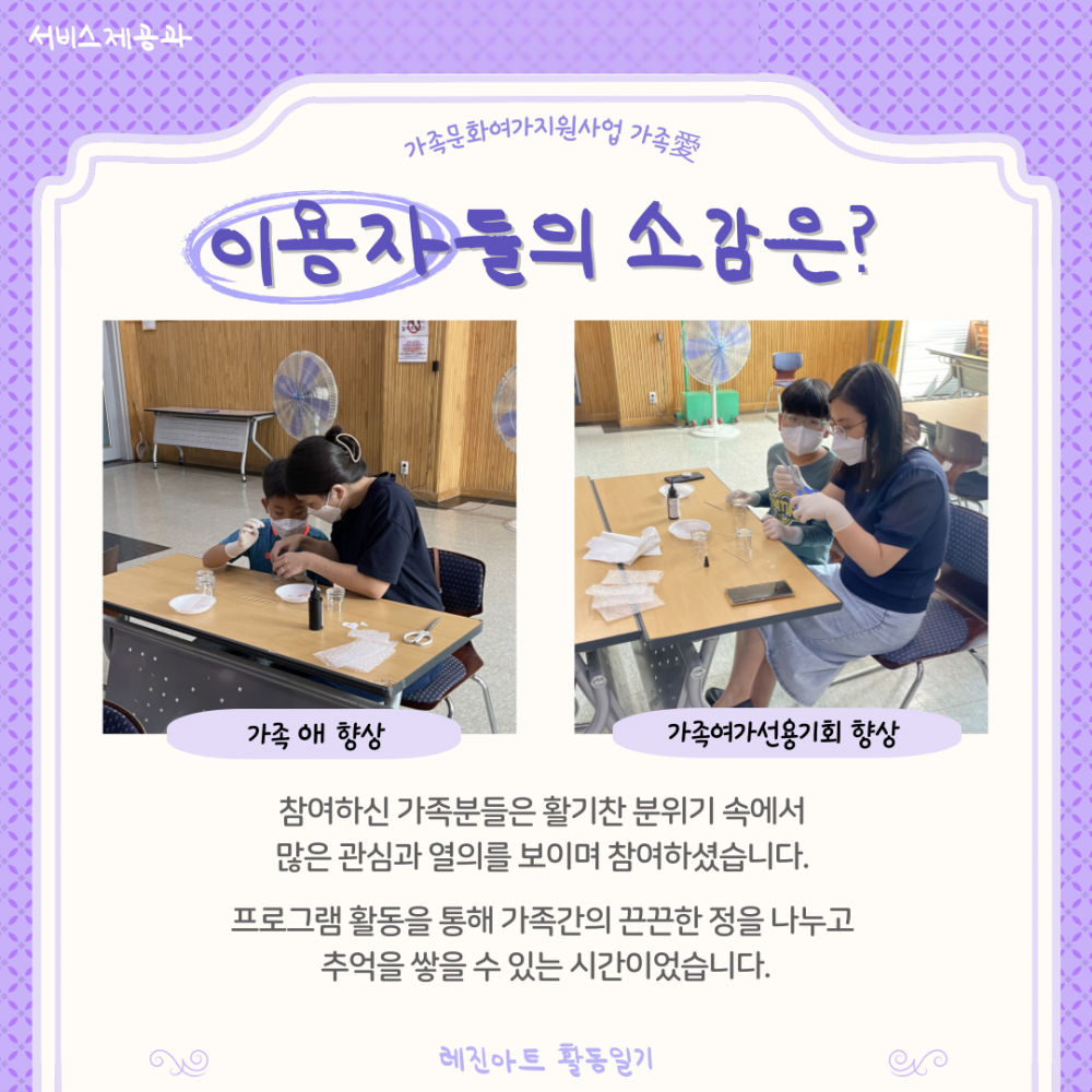 가족문화여가지원사업 가족愛 미니유리컵, 레진아트체험 진행