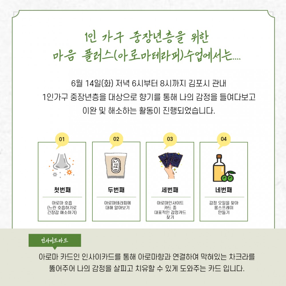 김포시 관내 중장년층 1인가구 대상으로 진행되었습니다.