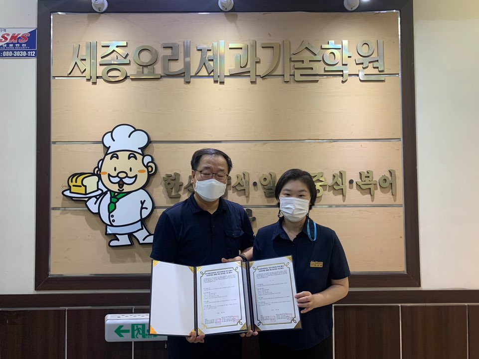 세종요리제과기술학원(사우동 소재)과 김포복지재단 행복한 세상 공모사업의 일환인 1인가구지원사업과 관련하여 6월 29일 업무협약을 체결했다.