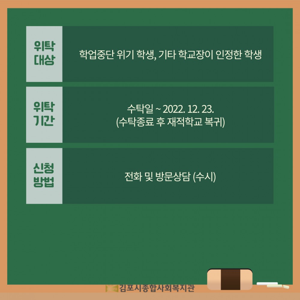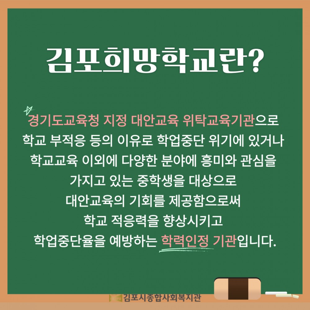 2022학년도 김포희망학교(대안교육 위탁교육기관) 입학 안내