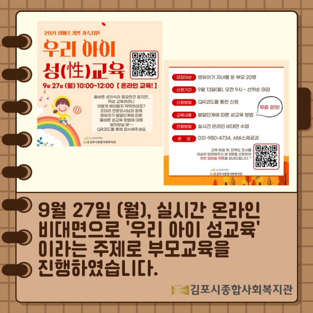 9월 27일(월), "우리 아이 성교육"이라는 주제로 부모교육을 진행했습니다.