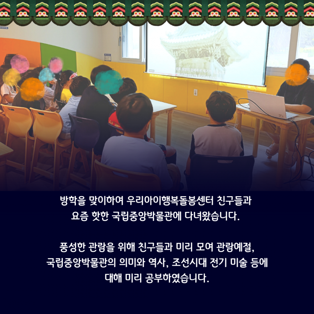 2025년 행복나들이 4차는 방학을 맞이하여 우리아이행복돌봄센터 친구들과 요즘 핫한 국립중앙박물관으로 문화여행을 다녀왔습니다.