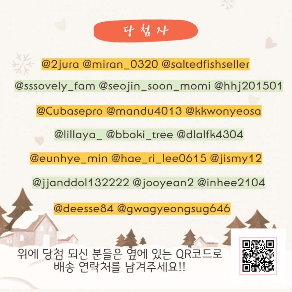 프린트 목록 인스타계정 팔로우 이벤트 당첨자 발표 페이지 정보 김포시종합사회복지관 조회 1,526 입력 2020-12-22 11:30 댓글 0 본문 링크 주소 클릭하기 https://forms.gle/tSCdb5MeM4VyBApH7 첨부파일 인스타.jpg (389.4K) 22회 다운로드DATE : 2020-12-22 11:30:08 인스타1.jpg (545.5K) 25회 다운로드DATE : 2020-12-22 11:30:08 프린트 목록 이전글김포복지재단 제5차 온라인 복지포럼 2020.12.29 다음글슬기로운 디지털 생활 온라인 교육 2020.12.16 댓글 0 댓글목록 등록된 댓글이 없습니다.
