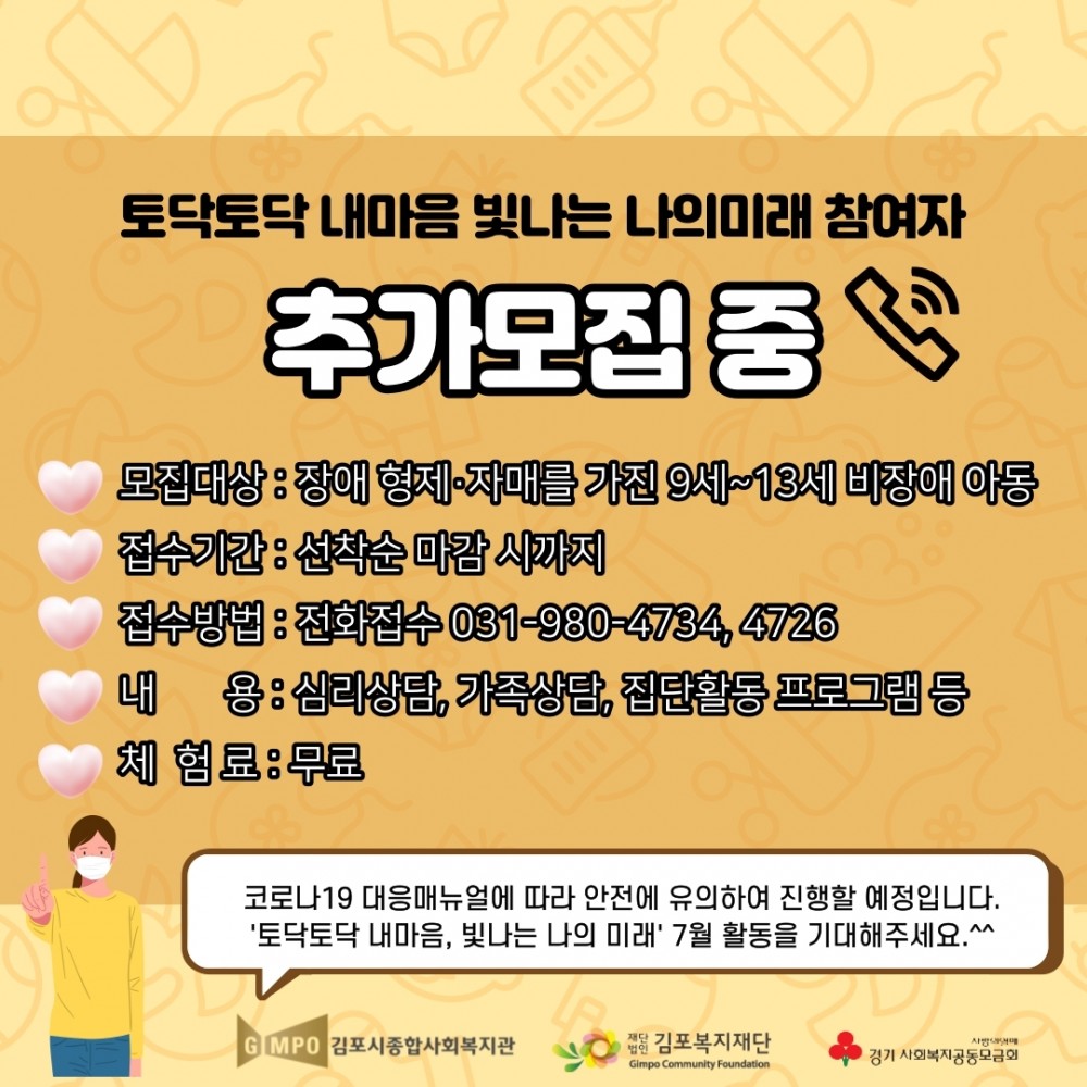 2020 김포복지재단 공모사업 토닥토닥 내마음 빛나는 나의미래(6월)